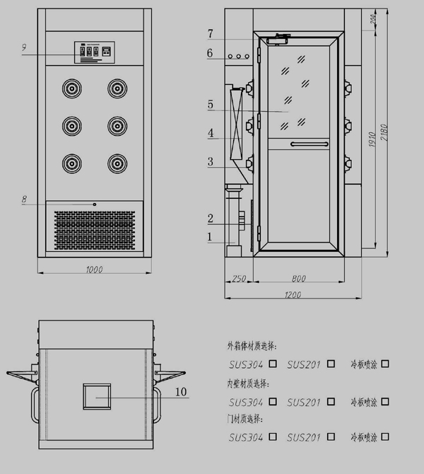 E、外箱體烤漆、內膽201不銹不銹鋼,門201不銹鋼