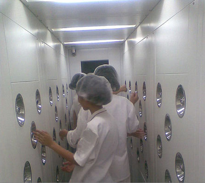 多人雙吹風淋房人或物料進出潔凈區必需的通道,起到氣閥室密閉潔凈室的作用。
