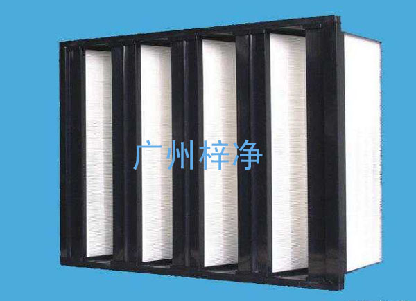 濾料超細聚丙烯纖維,呈V型排列在一個非常緊密的聚苯烯或鋁合金的支撐外框內;