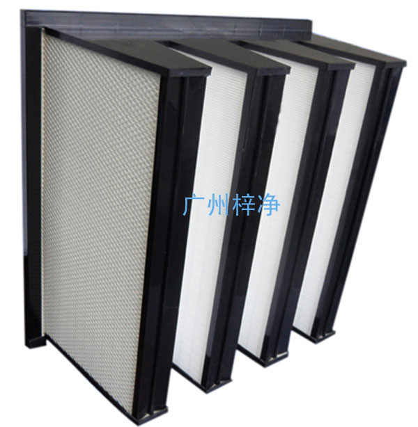 A、多片無隔板濾芯組成V型結構,安裝在塑料的框架中,該高效過濾器使用低阻力、防水、阻燃的超細玻璃纖維濾紙。外框和法蘭由重量較輕的聚丙乙烯制成,低重量有助于搬運和安裝。