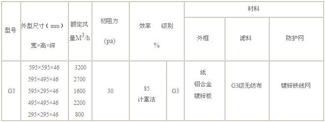 G3級初效過濾器特點: