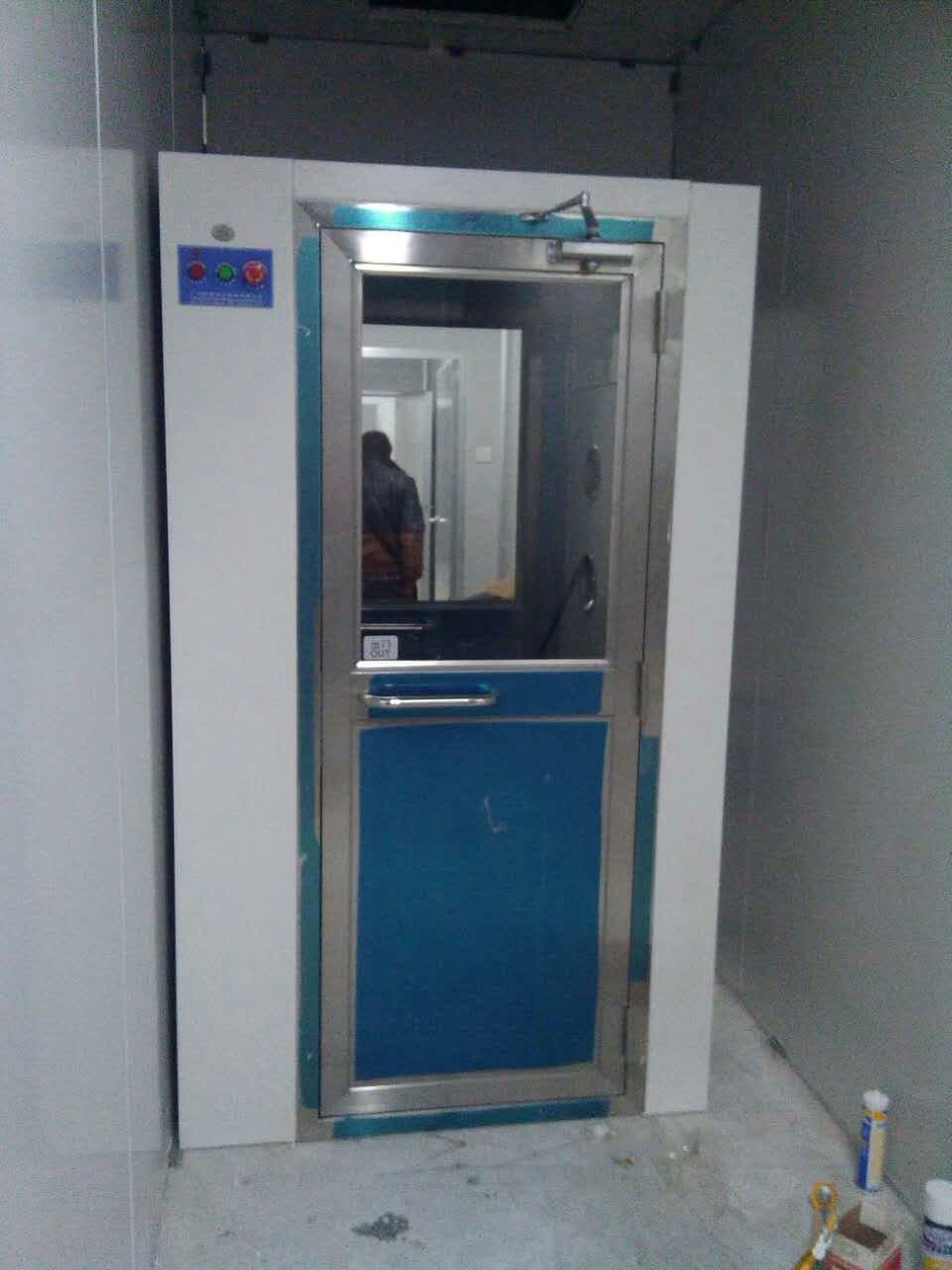 雙人雙吹風淋室到風淋區域內。為了達到吹淋的更好效果,風淋室設計的噴嘴出風口風速能達到25m/s以上,吹到人身上的風速最低18m/s,出廠的初始風淋時間設置為15秒。