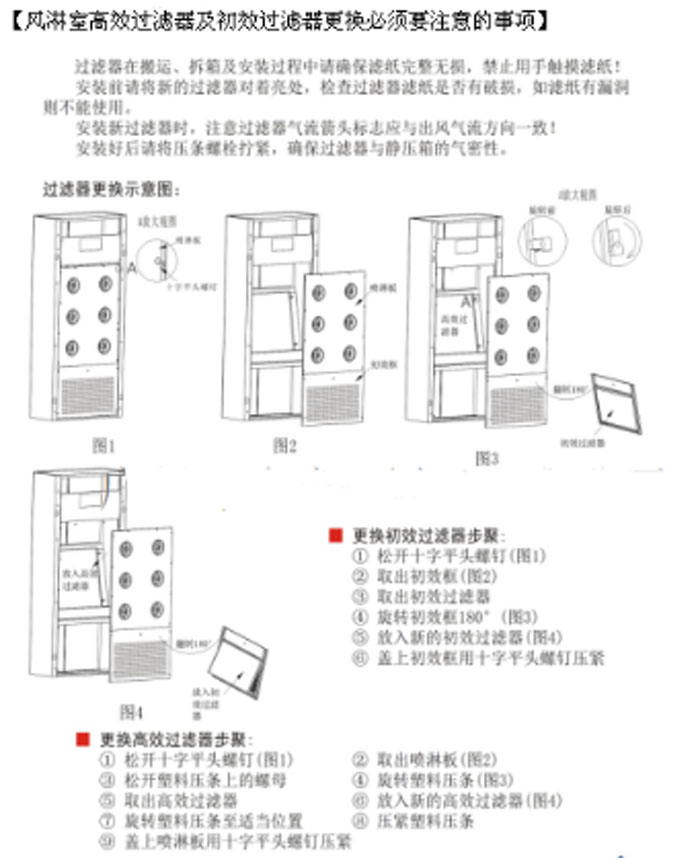 風淋室高效過濾器安裝步驟/風淋室配件: