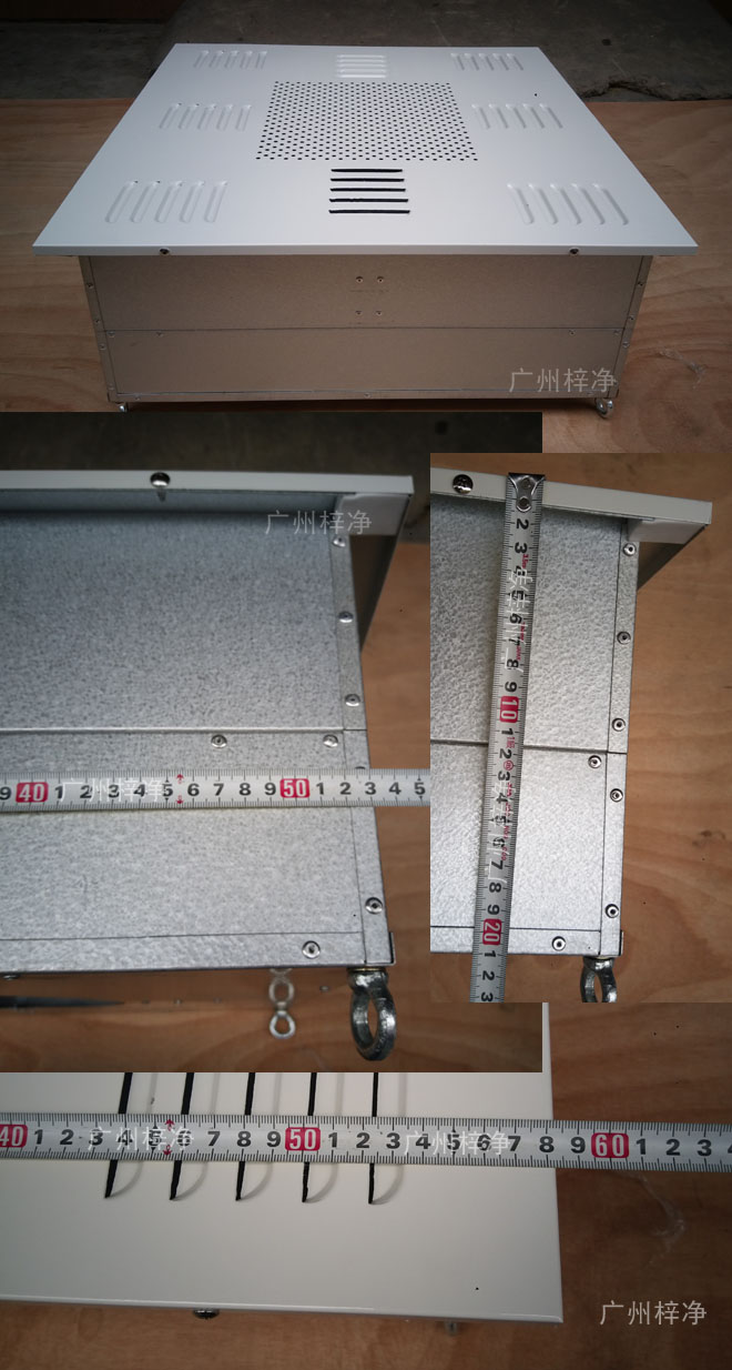 A、高效送風(fēng)口靜壓箱體,材質(zhì)有冷軋鋼板(A3板)與不銹鋼板。箱體是用作吊在天花上與四周庫板相結(jié)合密封,也是高效送風(fēng)口四件套主體。