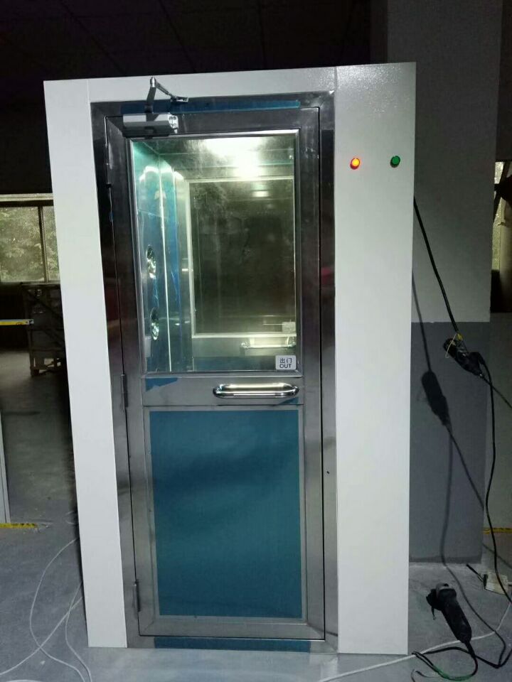 普通雙吹貨淋室過道均采用進口不銹鋼砂紋板制造,配置離心通風機和高效空氣過濾器。具有外形美觀、結構緊湊、檢修方便、操作簡單等優點。普通風淋室內的空氣由于風機的作用經初效過濾器進入靜壓箱,再經高效過濾器過濾后吹出,去除欲進入室內的人身服裝或攜帶物料表面上所附著的灰塵。吹下的灰埃經回收進入初效空氣過濾器。如此循環可達到風淋凈化的目的。