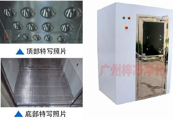 垂直流風淋室是人員進入潔凈室所必需的通道,為了減少人員進出潔凈室所帶來的大量灰塵,在潔凈室的入口處安裝功能齊全的氣閘室可以減少空氣污染,當人員通過風淋室時,污染的塵埃粒子經過高效過濾的高度潔凈氣流射掉,以以上的超強風速確保了有效的噴射,塵埃粒子經過初效過濾和高效過濾兩級過濾基本過濾掉。