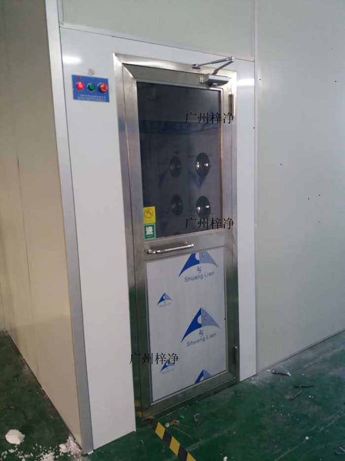 風淋室是進入潔凈室所必需的通道,可以減少進出潔凈室所帶來的污染問題。風淋室是一種通用性較強的局部凈化設備,安裝于潔凈室與非潔凈室之間。當人與貨物要進入潔凈區時需經風淋室吹淋,其吹出的潔凈空氣可去除人與貨物所攜帶的塵埃,能有效的阻斷或減少塵源進入潔凈區。風淋室/貨淋室的前后兩道門為電子互鎖,又可起到氣閘的作用,阻止未凈化的空氣進入潔凈區域。
