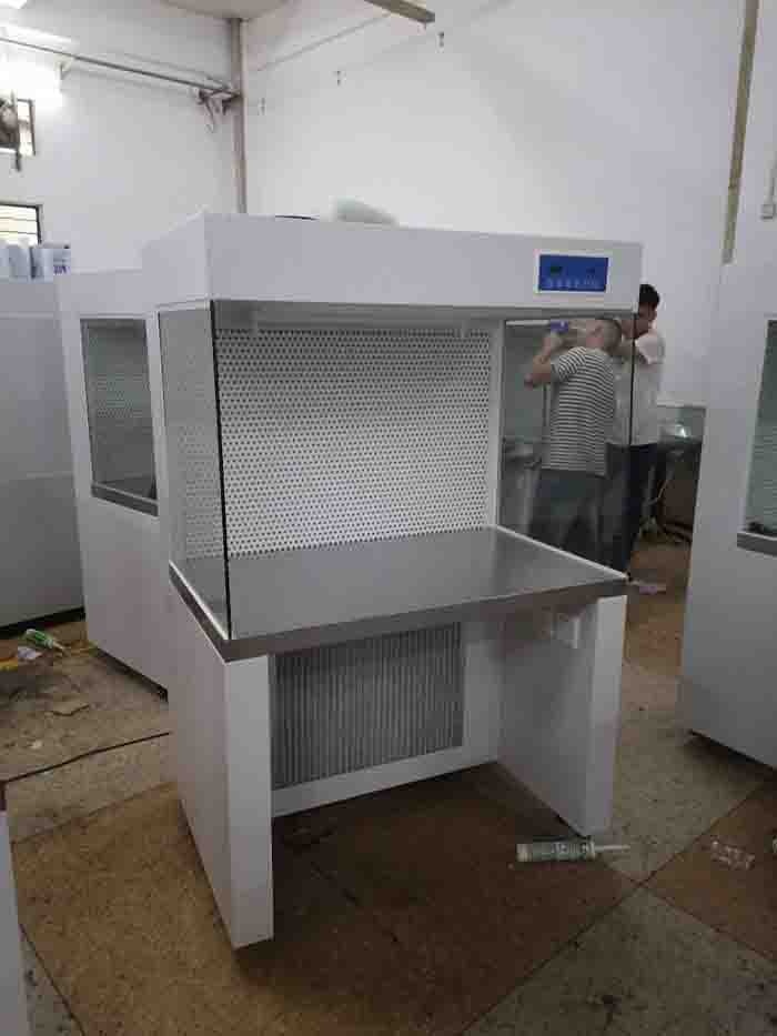 從操作人員數(shù)上分為單人無(wú)塵工作臺(tái)和雙人無(wú)塵工作臺(tái);從結(jié)構(gòu)上分為下吸風(fēng)和上吸風(fēng)兩種;從送風(fēng)又分為水平送風(fēng)與垂直送風(fēng)。