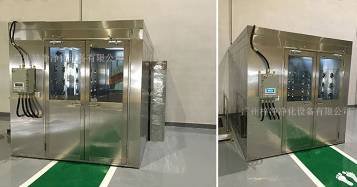 2、防爆風淋室是梓凈風淋室廠家結合潔凈行業頂尖技術為配合有可燃氣體的各種工藝車間而產推出的高科技型防爆設備風淋室產品,可根據客戶的要求設計單人或多人同時使用的安全型防爆風淋室。