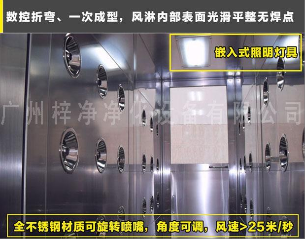2. 風淋噴嘴:360度可旋轉式嵌入安裝鏡面不銹鋼噴嘴,12只,左右兩側分布,吹風方向可旋轉;