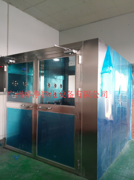 >>風(fēng)淋室由箱體、不銹鋼門(mén)、高效過(guò)濾器、送風(fēng)機(jī)、配電箱、噴嘴等幾大部件組成。