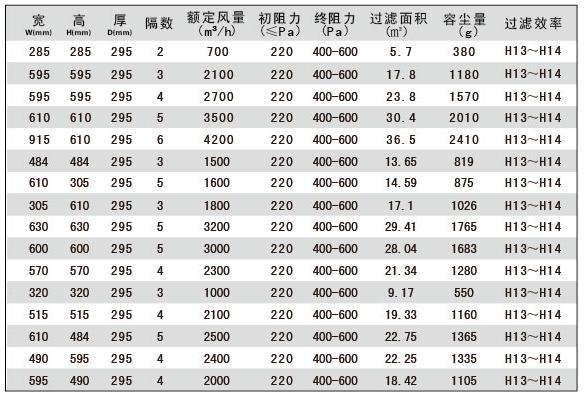 ULPA超高效過濾器規格尺寸及技術參數:ULPA超高效過濾器規格尺寸及技術參數