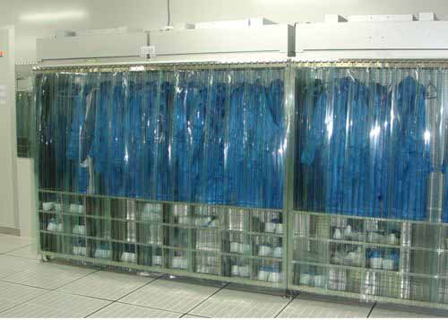 3、進入無塵室須先在更衣室,將口罩,無塵帽,無塵衣以及鞋套按規定依程序穿戴整齊。